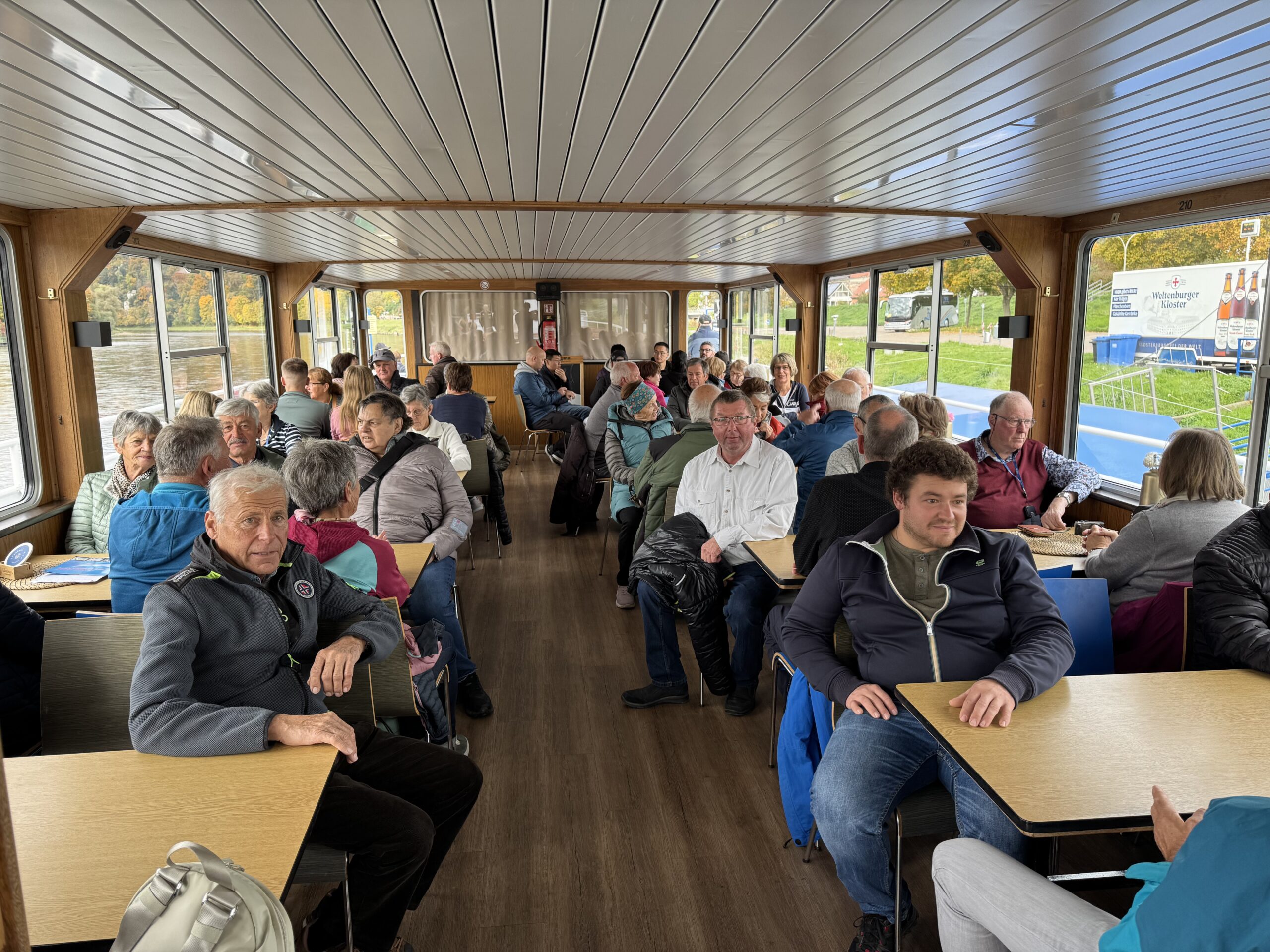 Nach einem ausgiebigen Frühstück ging es am Samstag zum Schiffsanleger in Kelheim. Dort begann eine malerische Schifffahrt durch den Donaudurchbruch bis nach Weltenburg – eine der schönsten Flusslandschaften Bayerns. Besonders beeindruckend war die herbstliche Kulisse: bunt gefärbte Wälder spiegelten sich im ruhigen Wasser der Donau, während das Schiff gemächlich durch die imposanten Felsformationen glitt.