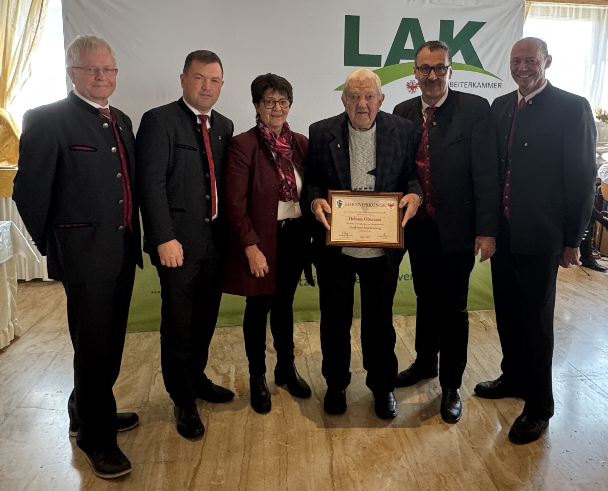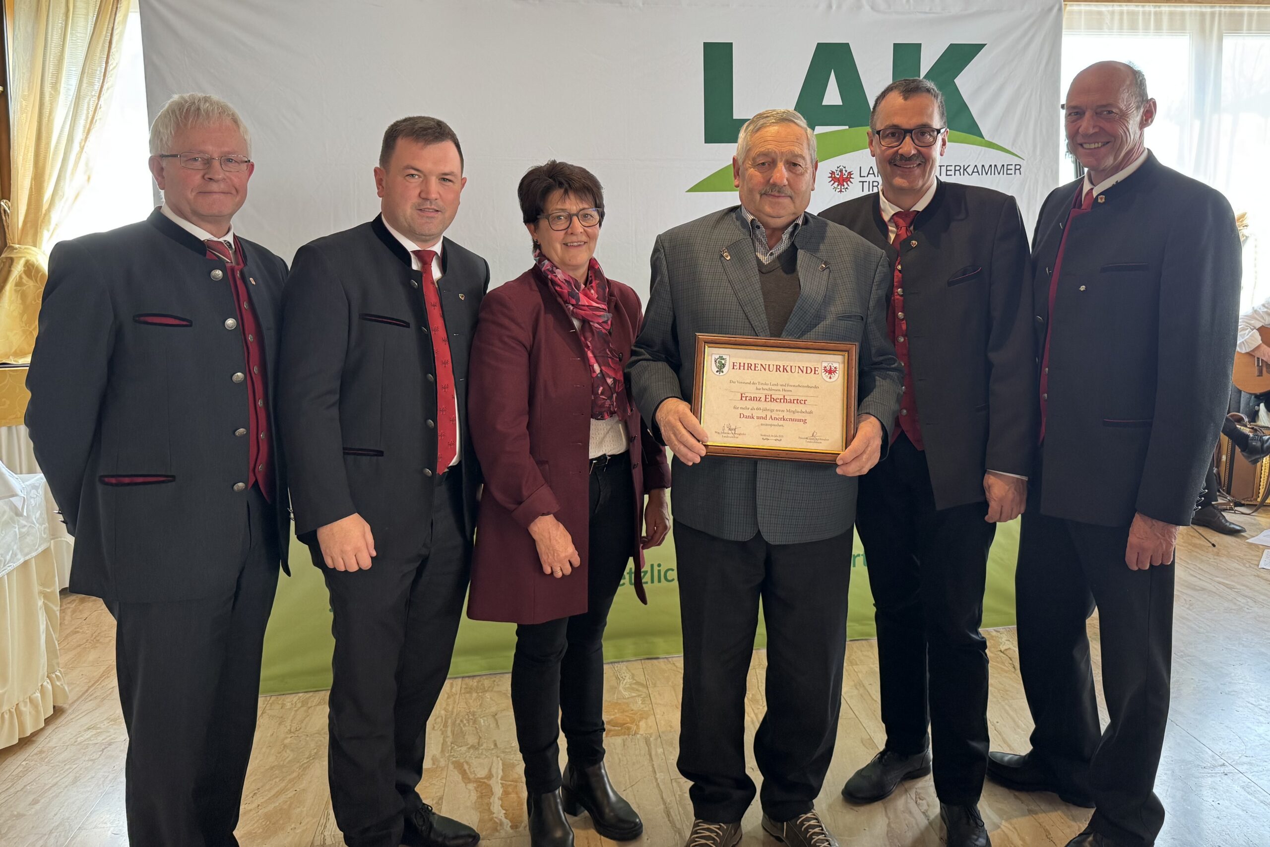 Im Herbst 2025 durften deshalb insgesamt 13 Jubilare, davon 11 Jubilare mit 60-jähriger Mitgliedschaft und 2 Jubilare mit 70-jähriger Mitgliedschaft zu den jeweiligen Ehrungsfeiern in Lienz, Imst, Hopfgarten i. Br. und nach Rum der Landarbeiterkammer Tirol eingeladen werden.
